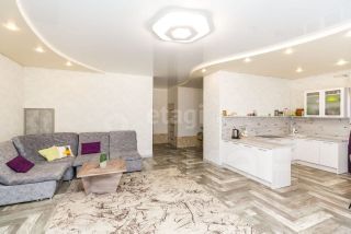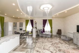 В доме на 1 этаже: прихожая, из нее переход в дом, выход в гараж и котельную; большая гостиная+кухня, спальня, ванная+туалет. На 2 этаже - две спальни, гардеробная, туалет. В доме новая кухня со встроенной техникой. Почти вся мебель остаётся при продаже.