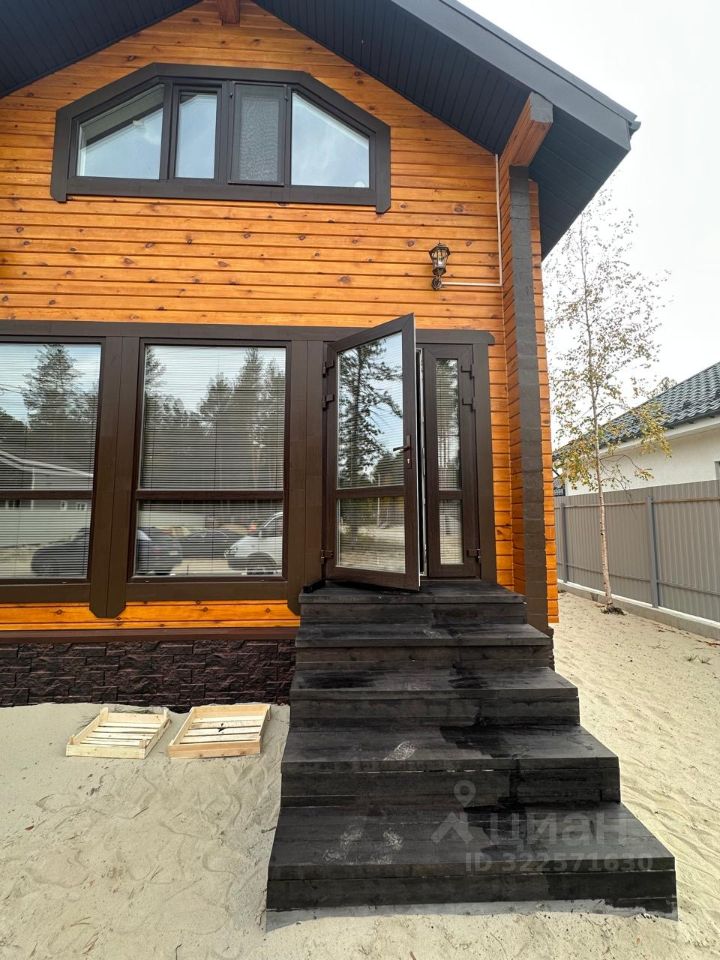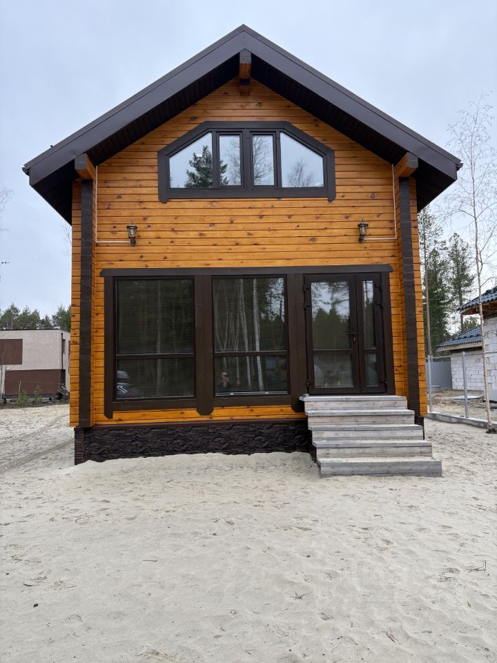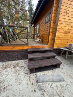 Сруб дома из соснового бруса 195 х 145 мм, установлен на винтовых сваях.