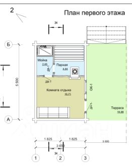 Баня из соснового бруса 145х145 мм, установлена на винтовых сваях. Строение состоит из открытой террасы 3х5,5, и основного помещения 5,5х3,65. Основное помещение разделено на комнату отдыха с уютным чердачком для сна, моечную и парилку.