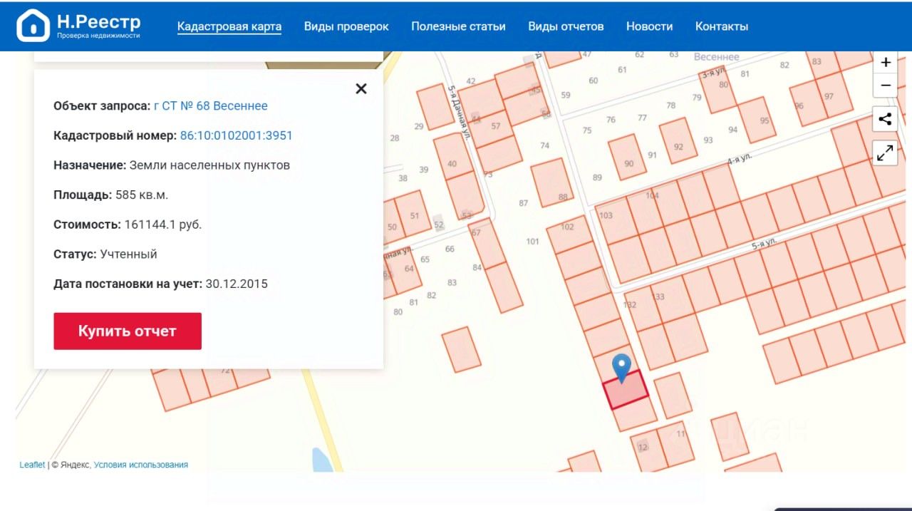 Земельный участок, кадастровый номер 86:10:0102001:3951, площадь: 585+\-17 кв.м. адрес Сургут, СТ No 68 "Весеннее", проезд No 1, участок No 158 Осмотр самостоятельно