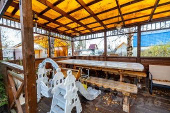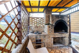 Второй дом на участке функционально используется как летняя кухня, что обеспечивает дополнительное пространство и комфорт в теплое время года. Хозяйке будет удобно делать осенние закрутки.