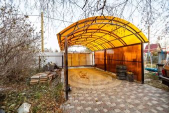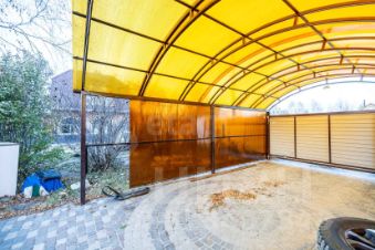 Ключевым преимуществом является развитая инфраструктура территории: здесь присутствуют асфальтированная парковка с защитным навесом, откатные ворота, практичная беседка с мангальной зоной для отдыха, теплица, а также хозяйственные постройки — сарай для инструментов и уличный туалет.