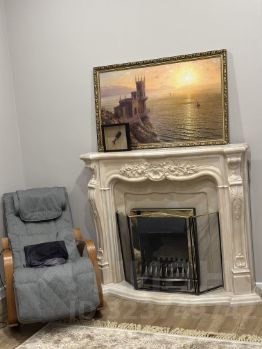 - просторная кухня-гостиная (45 м2), встроенная техника ведущих производителей, большой диван (раскладывается).
