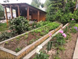 Грядки и парник: 5 грядок и небольшой парник для выращивания овощей.