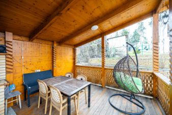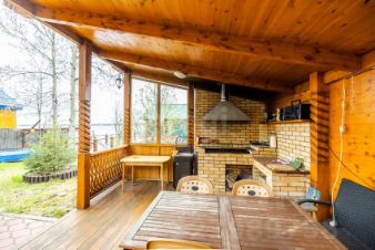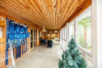 Лестница: Деревянная, ведет на второй этаж, где расположены 2 комнаты (33 м² и 15 м²). Застекленная веранда с панорамными окнами и видом на Теплый канал.