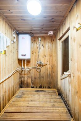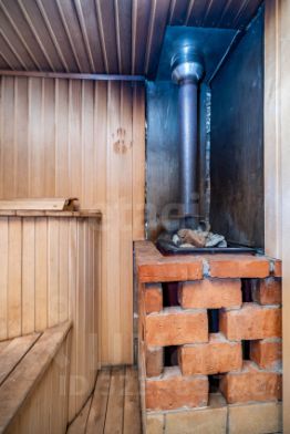 Баня: Парная, помывочная и комната отдыха (21 м²), расположена НАД водой, с верандой и спуском в Теплый канал (купание с мая по октябрь).