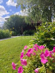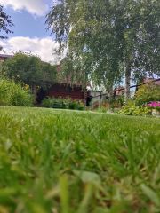 Участок отличается ухоженным газоном и ландшафтным дизайном с плодовыми кустами и декоративными насаждениями. Кооператив обладает развитой инфраструктурой с продовольственными и хозяйственными магазинами, а транспортная доступность обеспечивается круглогодичным автобусным сообщением маршрутов 69 и 23.