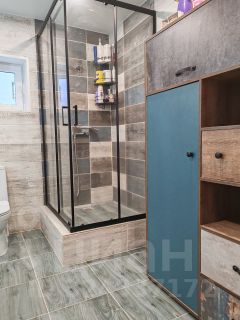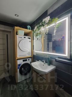 Ванная комната оборудована функциональным коробом для размещения стиральной и сушильной машины, экономящим пространство и ваше драгоценное время. Даже шкафы для полотенец выполнены в тон с плиткой, создавая гармонию и эстетику пространства.
