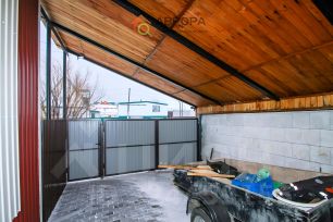 Между домом и гаражом крытый навес, уложена тротуарная плитка, что делает зону перед входом в дом ухоженной, чистой и аккуратной