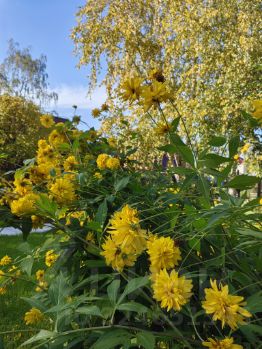 Участок отличается ухоженным газоном и ландшафтным дизайном с плодовыми кустами и декоративными насаждениями.