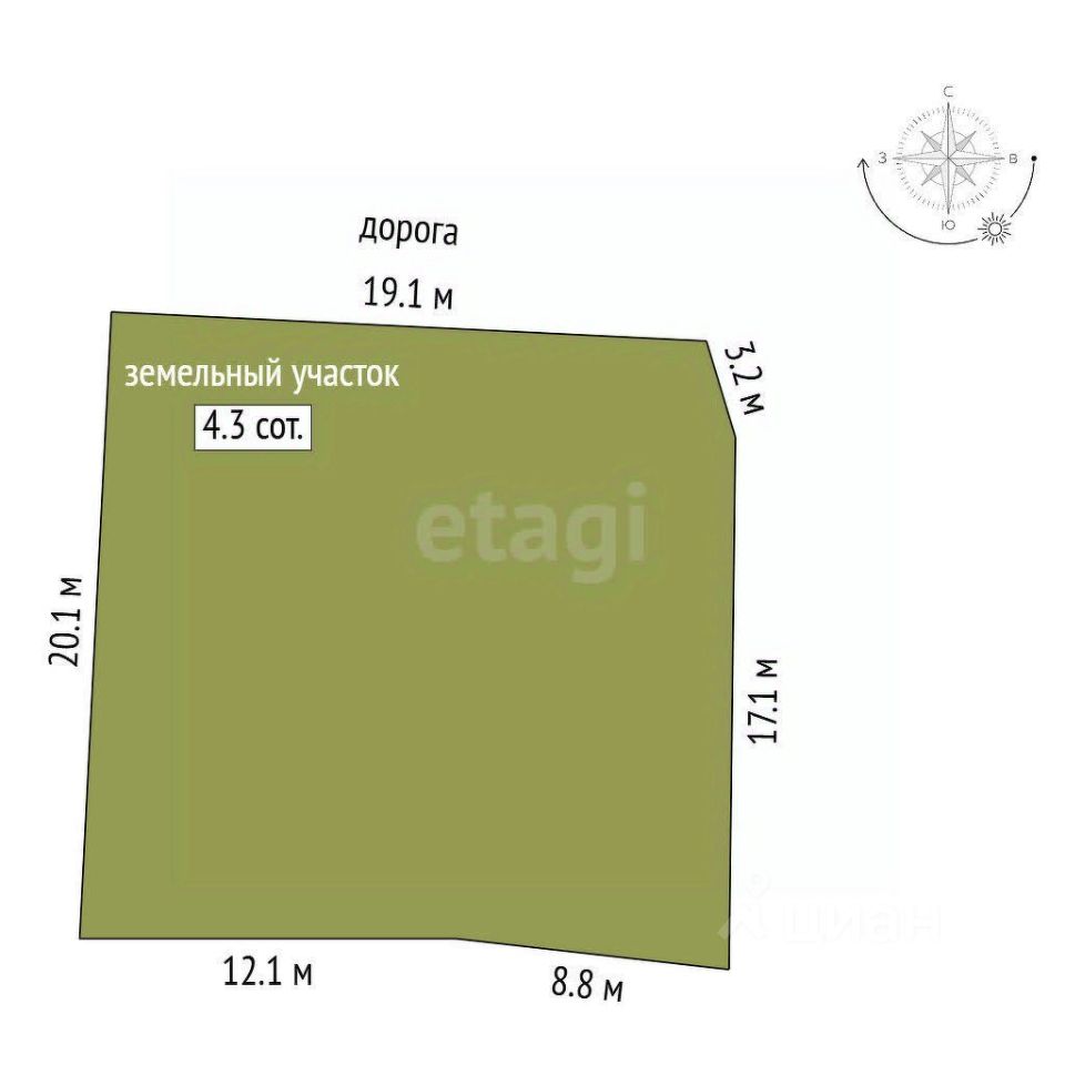 Участок: 4,3 сотки ухоженный, с плодовыми кустарниками и цветами