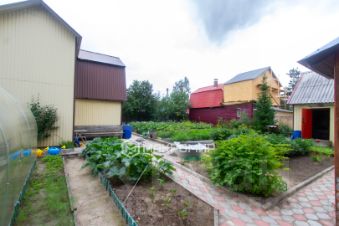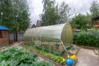 Из насаждений: яблоня, малина, клубника, сирень, смородина, облепиха. В теплице посажены огурцы, помидоры, перец. Небольшие вложения и дом можно переоборудовать в зимний вариант.