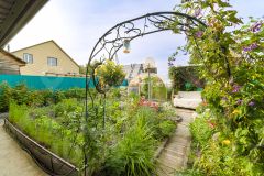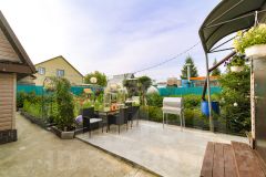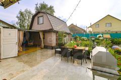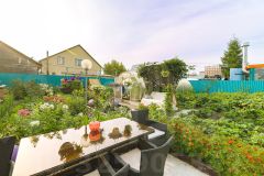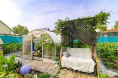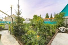 На участке есть отдельно стоящая баня, теплица, гараж для инвентаря , а парковка для машины , также есть насаждения малина, смородина, ирга, яблоня, калина, цветы.