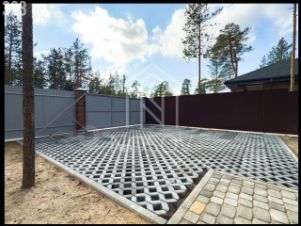 На участке предусмотрено парковочное место из биобрусчатки толщиной 80 мм. Размер парковочного места 5х6 м;