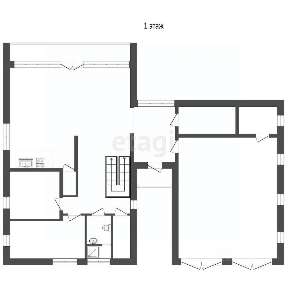 Расположение комнат: 2 гардеробные, 2 санузла, 2 детские комнаты, 1 мастер комната, гостиная, хоз помещения.