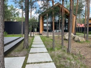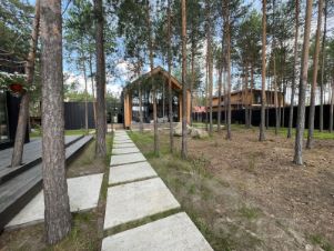 Дом расположен в экологически чистом районе города, в сосновом бору, в близи от реки. На участке в 15 соток земли сохранены более 150 деревьев. Прогулочные зоны, Величественные сосны вас будут радовать.
