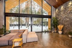 Дом в два этажа, спроектирован по индивидуальному проекту таким образом, что фасадная часть панорамного окна выходит на постоянное солнцестояние. Вы поймете, что в Сургуте много солнца, живя в данном доме.