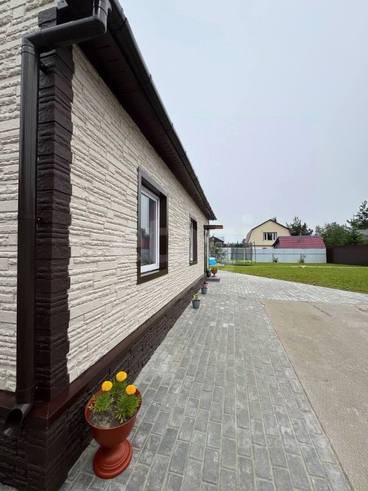 Участок расположен на возвышенности, что исключает подтопление. Территория ухожена: выложен газон, дорожки из брусчатки, установлен новый уличный туалет и дровник. Забор выполнен на фундаменте с лицевой стороны и из профлиста по периметру, предусмотрены ворота. Инфраструктура участка включает гараж 39 метров, новую баню 3,55 метров и летний навес 4,55 метров для автомобиля. Есть свободное место для строительства беседки.