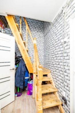 На первом этаже расположены прихожая, совмещенный санузел, котельная, кухня и просторная гостиная.