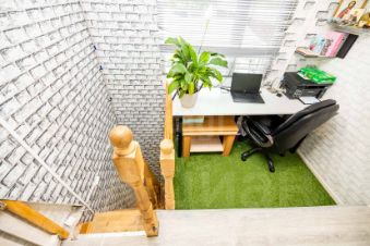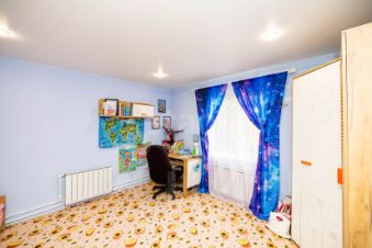 Второй этаж занимают две изолированные спальни по 16 кв.м. каждая, а на лестничной площадке оборудовано удобное рабочее место. Коммуникации автономные и готовы к эксплуатации: отопление обеспечивается электрическим котлом 9 кВт и камином, водоснабжение — от собственной скважины с системой очистки и бойлером, смонтирован септик, подведено трехфазное электричество.