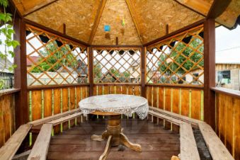 Участок 7.55 соток полностью благоустроен: здесь расположены отдельная новая баня 2024 года постройки с комнатой отдыха, летняя беседка, гараж на два автомобиля, детская площадка, теплица и аккуратный огород.
