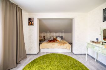Дом капитальный, обшит деревом и снаружи металлосайдингом, имеет несущие стены из бетона. Два этажа, имеется встроенный гараж с секционными воротами. Дом 120 кв м. На территории участка имеется хоз постройка, теплица. Дворовая территория ограждена забором профнастил, имеет калитку и распашные ворота кованные, с интересным дизайном. Территория двора имеет газон, цветочные клумбы, сзади дома теплица и грядки. Все окультурено, ухожено и красиво.