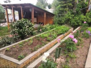 Грядки и парник: 5 грядок и небольшой парник для выращивания овощей.