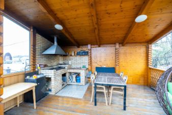 Лестница: Деревянная, ведет на второй этаж, где расположены 2 комнаты (33 м² и 15 м²). Застекленная веранда с панорамными окнами и видом на Теплый канал.