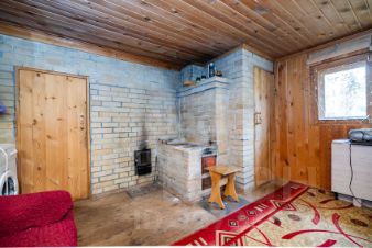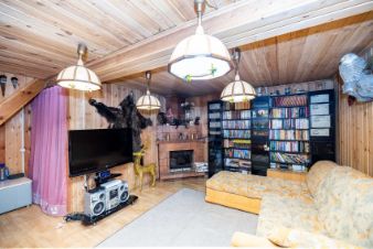 Гостиная: Просторная с камином (25 м²), отдельная кухня (15 м²), тамбур с кладовой (24 м²).