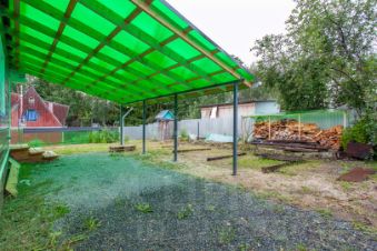 На участке предусмотрены откатные ворота, калитка и парковка под навесом шириной 5 м. Участок дополнен плодовыми кустарниками, что позволит наслаждаться свежими ягодами прямо у себя на участке.