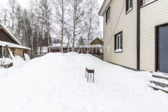 Дом расположен на участке 5 соток в удобном месте — первый дом от главной трассы. Это огромный плюс зимой: дороги чистят в первую очередь, и вам не нужно плутать по узким улицам, чтобы проехать к дому.