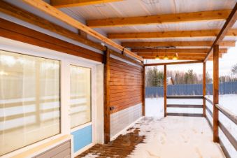 Дом 80м2 из бруса, на ленточном фундаменте, утеплен каменной ватой Технониколь, и обшит декоративным сайдингом.