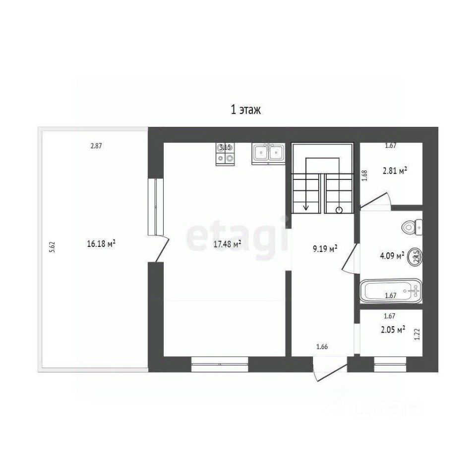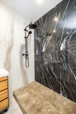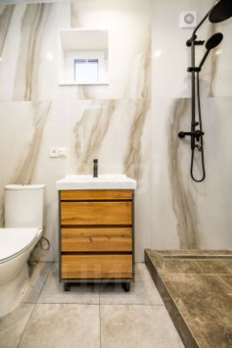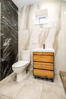 Санузел совмещен, теплые полы, на стенах и на полу керамогранит, оборудован душевой трап. Из с/у можно попасть в техпомешение, где расположена котельная с бойлерной. Септик на 7 кубов, откачиваемый. Вода из скважины, в доме с греющим кабелем.