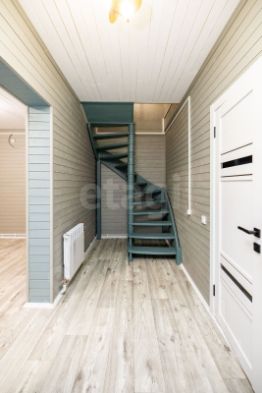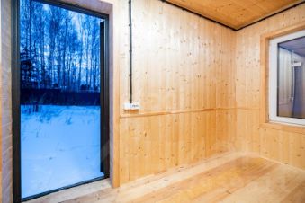 Первый этаж в доме обшит вагонкой штиль и покрашен в современном стиле, краска экологическая Акватек Сканди, на полу качественный линолеум.