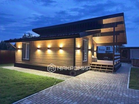 * выполнен в одном стиле с домом и баней