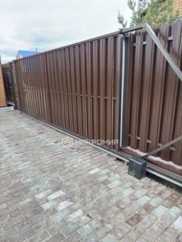 * огорожен по периметру , с лицевой стороны евроштакетник на ленточном фундаменте с автоматическими воротами и подогревом двигателя , шириной 5 метров , под стоянку двух автомобилей