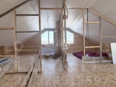 Планировка функциональна и рассчитана на комфорт семьи. На первом этаже расположена просторная гостиная площадью 34 кв. м., техническое помещение и санузел. Отдельным преимуществом является уютная комната отдыха с собственной баней и душем — готовое решение для релаксации. На втором этаже обустроены жилые помещения. Дом полностью готов к проживанию: инженерные системы включают собственную скважину с чистой водой, современный септик объемом 5 куб. м и надежное отопление (теплые полы на первом этаже и электрические конвекторы на втором). Подведено трехфазное электричество с интеллектуальным счетчиком. Возможна постоянная регистрация.