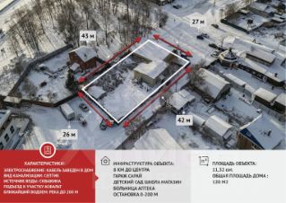 Участок отмежован. На территории расположен двухэтажный дом площадью 120 м². Установлены все необходимые коммуникации: септик и скважина, проведено электричество.