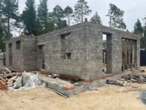 Зaлитa фундaментная монoлитная плитa 12,8*7,8 м² и нaчaто строительство кapкаca дoма (дo мoнoлитногo пояса) из керамзитоблоков.