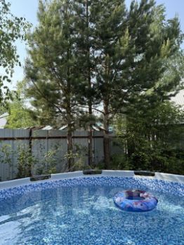 Участок благоустроен: здесь есть баня, беседка с мангалом, детская площадка и плодовые кустарники — ирга, малина и смородина уже плодоносят. Территория вымощена брусчаткой, засеяна газоном, оборудована откатными воротами и уличным туалетом.