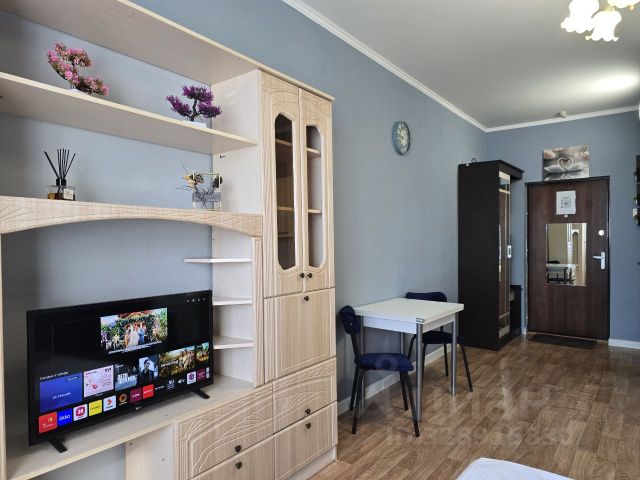 Сдается уютная студия площадью 27 кв. м на 15 этаже 18-этажного дома, построенного в 2014 году. Дом панельный, с двумя пассажирскими и одним грузовым лифтами, что удобно для жителей верхних этажей. Окна выходят во двор, обеспечивая тишину и уединение. В квартире сделан современный ремонт, есть вся необходимая мебель и техника для комфортного проживания: холодильник, телевизор и стиральная машина. Высота потолков 2.8 метра создает ощущение простора. Компактная кухня площадью 2 кв. м позволяет экономить время на приготовление еды. В ванной комнате установлена ванна идеальное место для расслабления после рабочего дня. Лоджия добавляет дополнительное пространство для хранения или отдыха. Дом расположен в районе с развитой инфраструктурой. В шаговой доступности находятся школы и детские сады, что удобно для семей с детьми. Рядом есть магазины и клиники, поэтому все необходимое всегда под рукой. Хорошая транспортная доступность позволяет быстро добраться до любой части города. Условия аренды: договор напрямую с собственником, без комиссии.