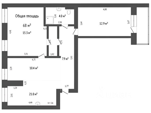 От года, комм. платежи включены (без счётчиков), комиссия 70%, залог 20 000 ₽
